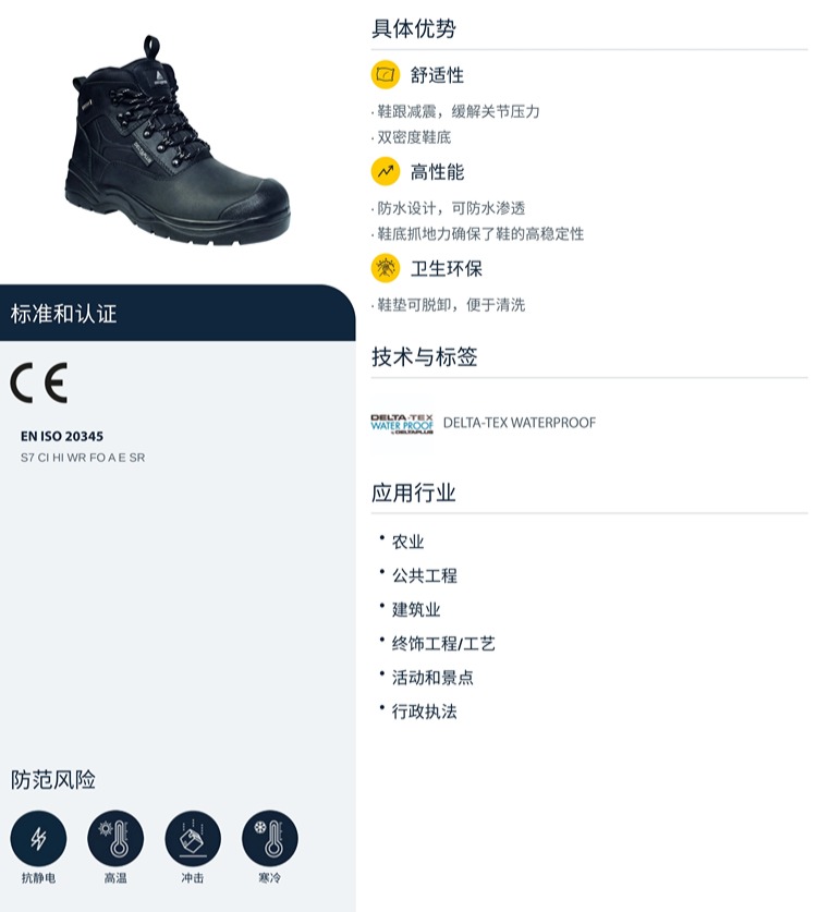 火调鞋 / 火灾现场勘查鞋 / 代尔塔 防水高帮安全劳保鞋