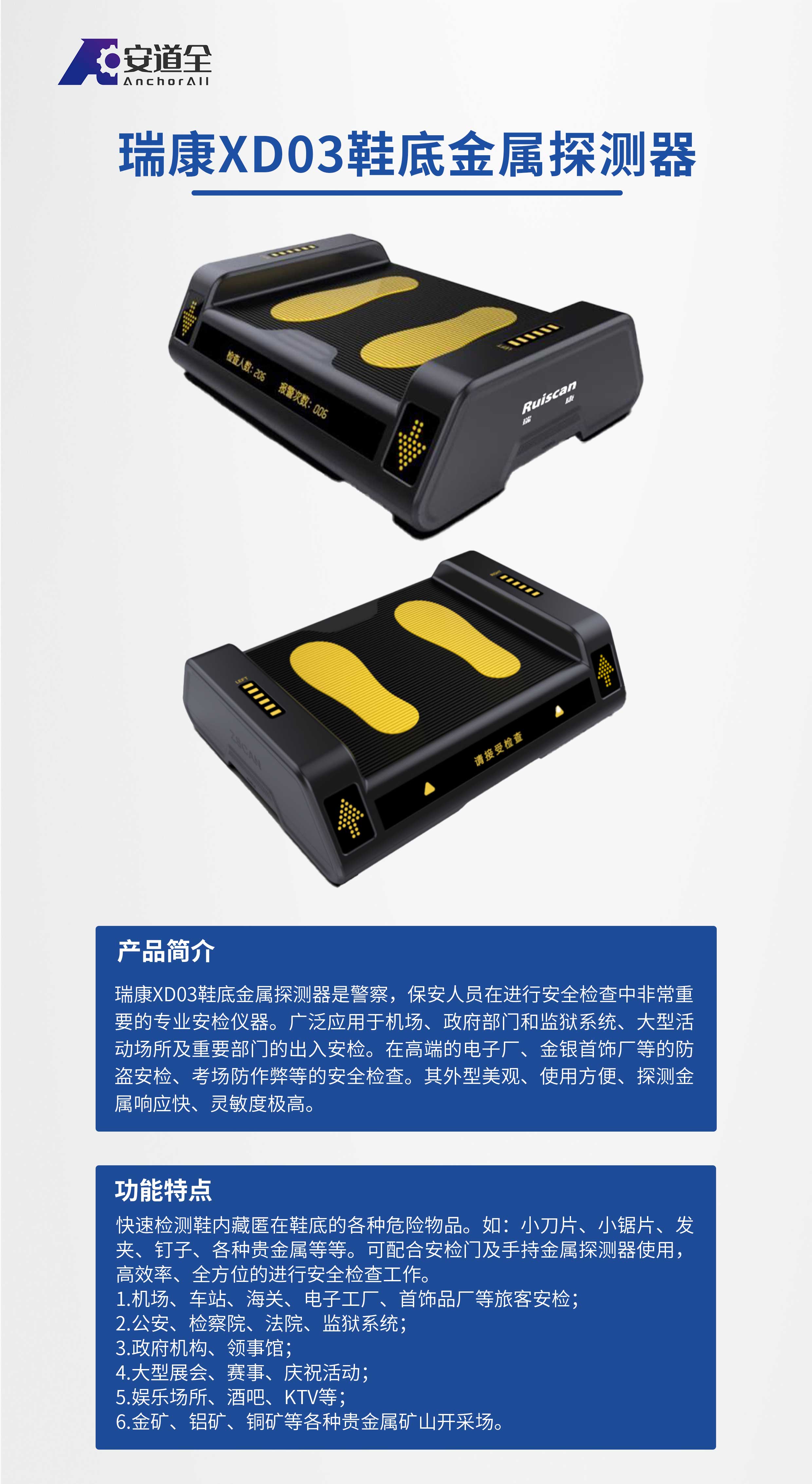 瑞康XD03 鞋底金属探测器-多场景鞋底金属探测设备