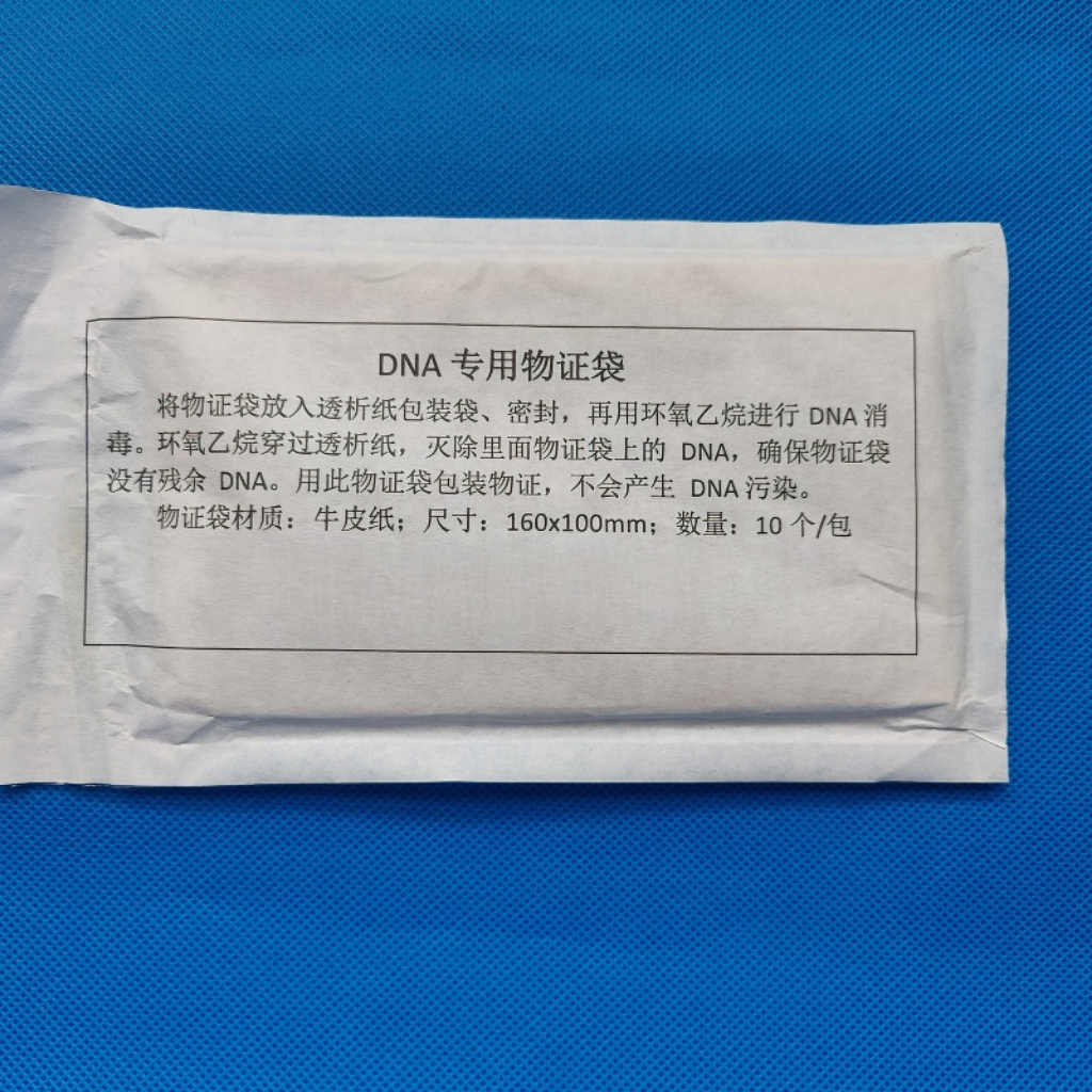 可定制各类款式尺寸 将牛皮纸物证袋放入透析纸包装袋、密封,再用环氧乙烷进行DNA消毒。环氧乙烷穿过透析纸,灭除里面物证袋上的DNA,确保物证袋没有残余DNA。